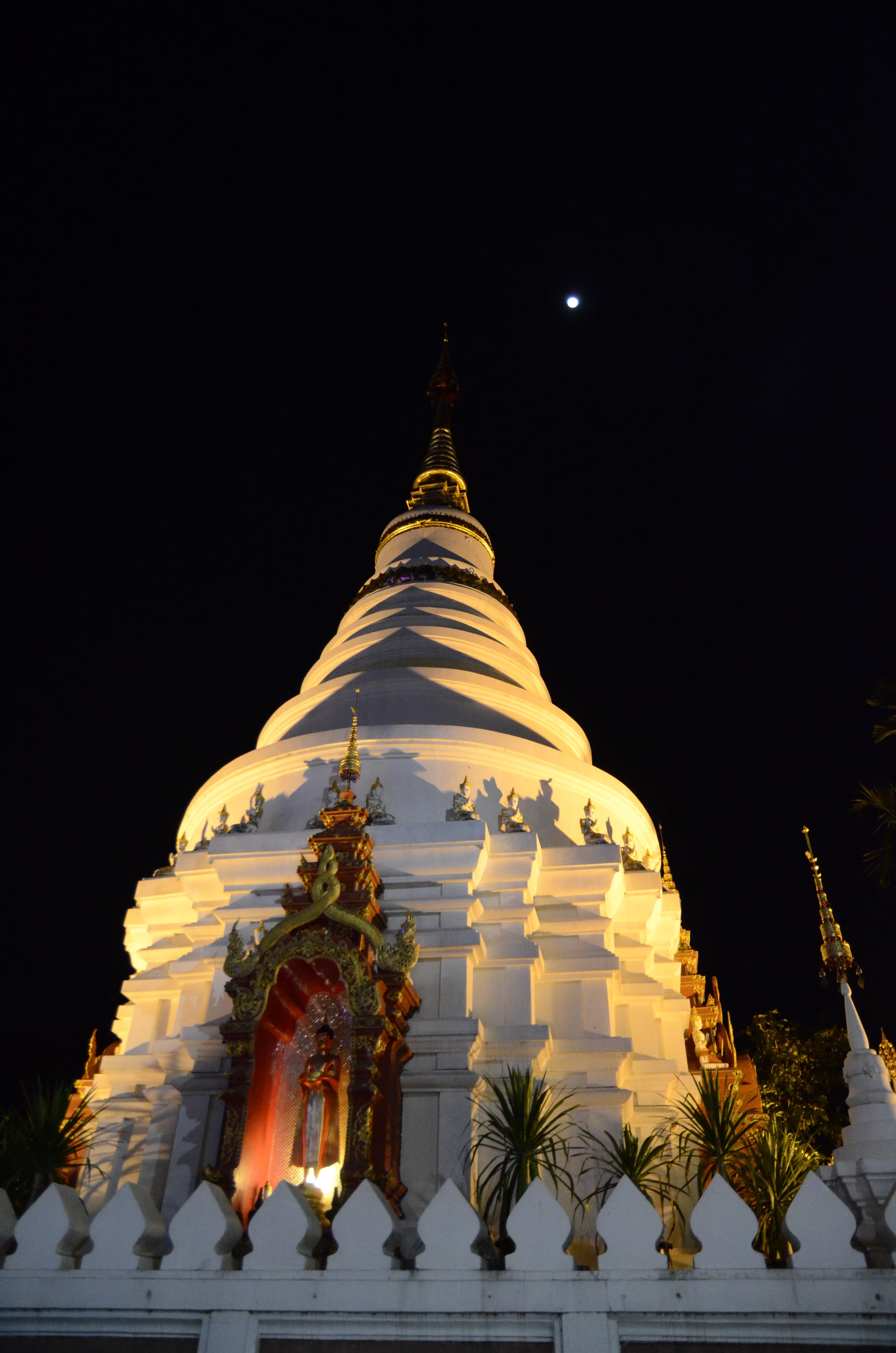 Let měl nakonec bohužel téměř hodinu zpoždění. Takže jsme si v něm pak koupili i občerstvení, protože jsem už měli hlad. Po přistání jsme si vzali taxi a za 120 THB jsme se nechali odvézt do centra k hotelu. Ubytovaní je moc pěkné, za ty peníze aby taky nebylo :)) Stojí na čtyři noci více jak polovinu toho, co jsme dali na Lantě za 14 dnů 🙂 Ale máme balkonek a bazén, tady moře není. Za rohem se také nachází nejnavštěvovanější Wat (chrám) v celém Chang Mai. Tam se podíváme jiný den, většina jich po páté odpoledne zavírá.