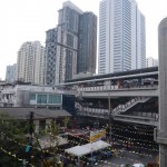 Po ubytování jsme se rozhodli navštívit nákupní centrum MBK. Venku jsme odmítli tuktuky a na můj popud vyrazili na metro. Trochu zklamání bylo, že do centrální oblasti jezdí jen nějaký typ nadzemky. Ale aspoň jsme viděli i další kousek Bangkoku. MBK je obrovské nákupní centrum o sedmi patrech, kde v každém jsou jiné typy obchodů. Jedná se spíše o takové trhy pod střechou 🙂 V sedmém patře se nacházejí kina a restaurace, kde jsme si vyhlídli jednu pěkně vypadající a s několika lidmi. Byl to však zcela nový zážitek, ve stole zabudovaný vařič s hrncem předvídal to, že se brzo asi pobavíme 🙂 S námi se tedy pobavila i servírka, která nám nakonec ukázala, jak si večeři připravit. Teda spíš Pínovi, já si prozřetelně objednala jídlo již uvařené 🙂 Přesto jsme odcházeli najedení. Doprohlídli jsme si nějaké obchody a nechali se odvézt zpátky k hotelu.