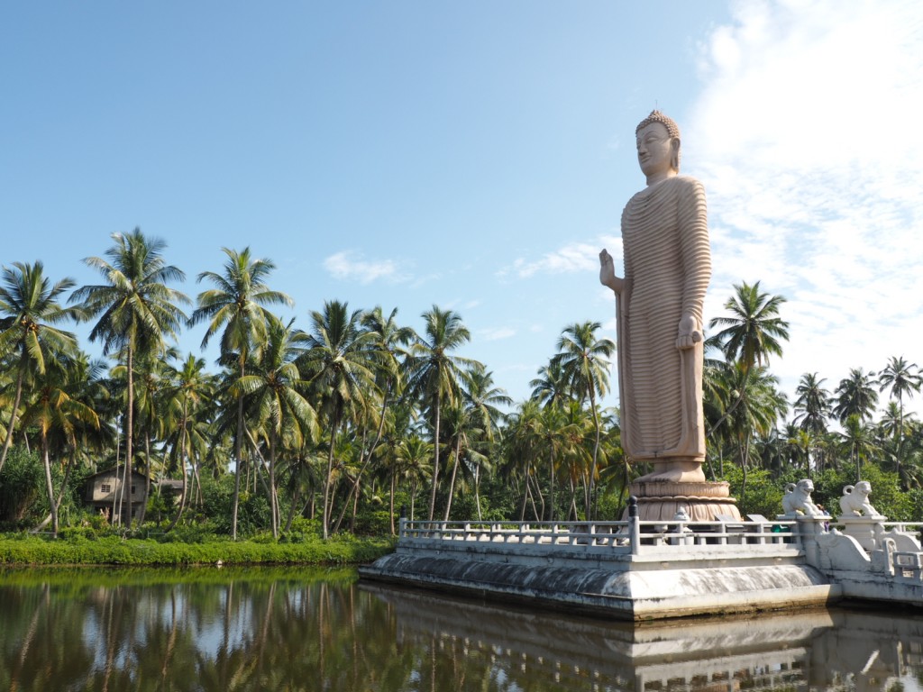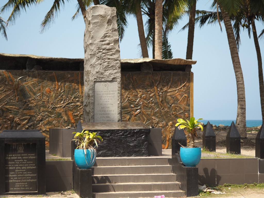 Dnešní den nás přivítalo slunečné ráno. Po rychlé vlažné sprše, která byla v neklimatizovaném pokoji nutná, jsme se v poklidu nasnídali a následně se vydali na nejbližší autobusovou zastávku. Chvilku to trvalo, než nám došlo, že stojíme na špatné straně silnice 🙂 Nejdříve jsme se snažili stopnout červený autobus, pak autobus s vězni a nakonec nám zastavil až autobus bílý, kam jsme se nasoukali a spolu s místními jeli vstříc památníku Tsunami Honganji Viharaya a želví záchranné stanici. Místního revizora jsme nejspíše přeplatili 100 srílanskými rupiemi, jelikož nám nerozuměl ani slovo, když jsme se mu snažili zodpovědět otázku, kam jedeme, a tak jsem mu dala do ruky rovnou kilo. Vystoupili jsme asi 200 metrů před památníkem a procházkou kolem moře došli až k němu. Jedná se o 18,5 metrů vysokou sochu Budhy. Po obhlídce následovala návštěva želví záchranné stanice, kde měli ve vodních nádržích malinkaté jednodenní želvičky i starší nemocné želvy, o které se zde starají. Některé z nich přišly prý o ploutev po útoku žraloka. Zaměstnanec stanice nás pak ještě odkázal k dalšímu památníku na uctění obětí tsunami, které Srí Lanku zasáhlo v roce 2004. Zemřelo zde v tu dobu přes 35 tisíc osob.