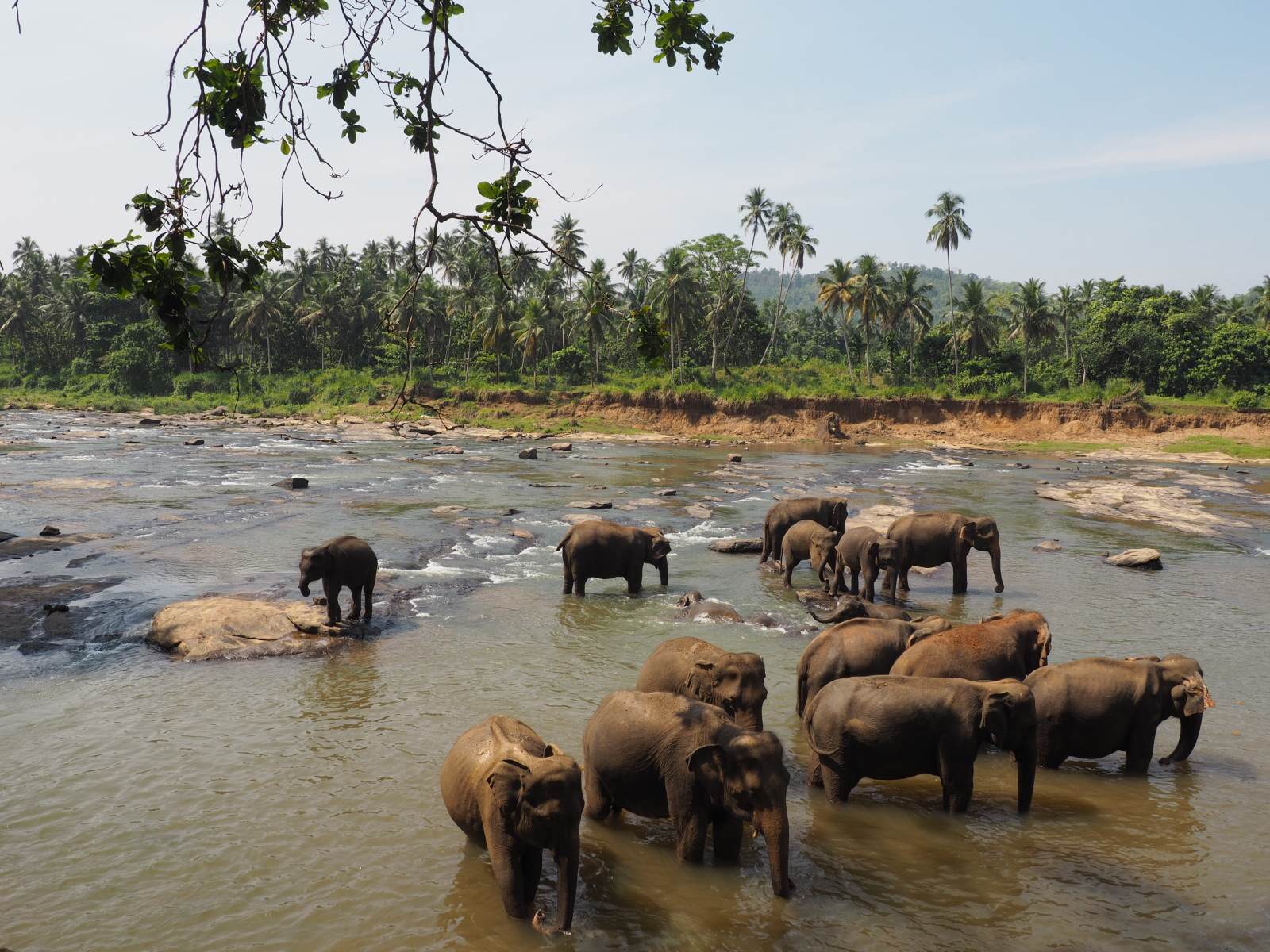 Po další snídani o toastech, vajíčkách a marmeládě nás před devátou hodinou vyzvedl Sinna s dalším řidičem a jeho minivanem. První cíl dnešní cesty byl sloní sirotčinec Pinnawala cca 40 km od Kandy. Vstup se tam platí 2500 rupií, kdy se následně projde uličkou plnou suvenýrů k vyhlídce do parku. V Pinnawale by mělo být přes 80 slonů, my viděli stádo o asi 30 – 40 slonech koupající se v řece, hodně mláďat s matkami. Někteří ze slonů byli přivázáni řetězy ke břehu, aby nemohli odejít. Kdo chtěl, mohl si za nějaké další rupie koupit banány a slony nakrmit. Musím říct, že za ty peníze návštěva sirotčince nestojí. Mnohem lepší je zaplatit si nějaké safari a vidět slony volně v přírodě (národním parku), jako jsme byli v Udawalawe.